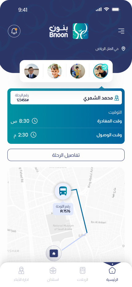 Bnoon is a smart app designed for parents to monitor their children's school trips. Track the school bus in real-time, receive instant notifications when your child gets on or off, and ensure their safe arrival every day. A seamless tech solution that keeps you connected to your children and their school — anytime, anywhere.